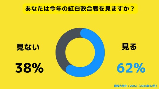 大学生の62%が今年の紅白歌合戦を見ると回答しました。
