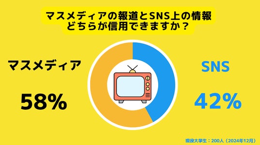 ■現役大学生のうち、42%がマスメディアよりもSNSのほうが信頼できると回答