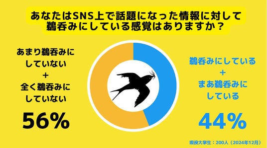 質問の結果、44%の大学生が情報を鵜吞みにしている自覚があると回答しました。