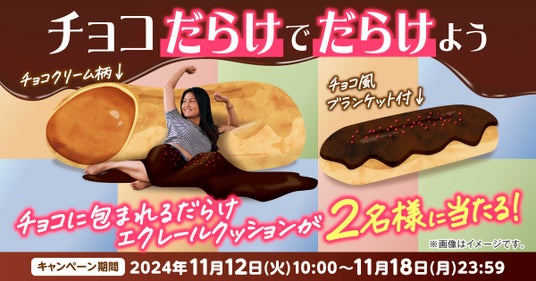 ■チョコだらけで「だらけ」よう!フォロー&リプライでオリジナルエクレールクッションがもらえる!