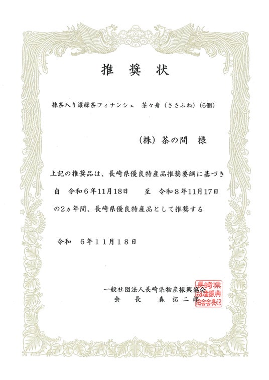 株式会社茶の間(長崎県佐世保市上本山町971)は、抹茶入り濃緑茶フィナンシェ『茶々舟-SASAFUNA-』の工房と工房直売所を2月21日(金曜日)に長崎市葉山にオープンさせます。茶々舟(ささふね)は佐世保市で有機栽培茶の販売を手掛ける北村茶園が、お茶のおいしさを味わっていただきたいとの想いで作った抹茶フィナンシェで、昨年3月に発売を開始したところ大変ご好評いただいております。2024年11月には長崎県の優良特産品に推奨されました。この度、製造を強化するにあたり縁があって葉山の地に工房を構えさせていただくことになりました。