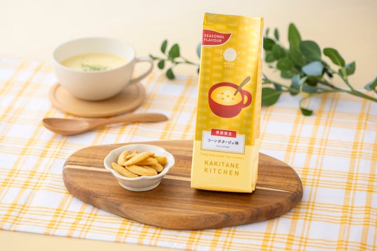 『かきたね コーンポタージュ味』は、寒い季節にほっこりと温かい気持ちをお届けいたします。