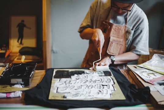 型紙を切り抜いてペンキで文字や絵柄をペイントし、クローゼットに眠っている洋服や汚れてしまった洋服を再生。アーティストとして全国で活躍する守矢努氏が、お持ち込みいただいたアイテムにステンシルを施します。