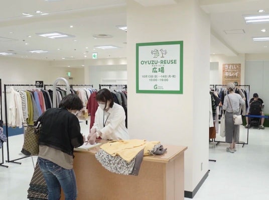 エコフキャンペーンでお持ちいただいた不用品について、ご賛同のお客様の一部の衣料品を「OYUZU・REUSE 広場」に出展いたします。手放した衣料品が、欲しいと思う人の手に渡り再び活用されたら素敵!という思いから企画しました。