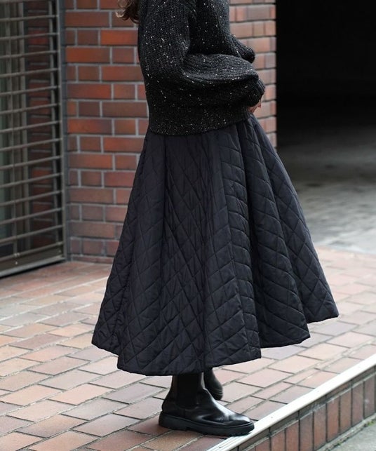 寒さを感じやすいスカートも温もりをキープ (キルティングスカート ブラック着用)