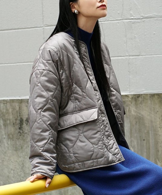 秋口から春先までロングシーズン活躍します (ノーカラージャケット グレー着用)