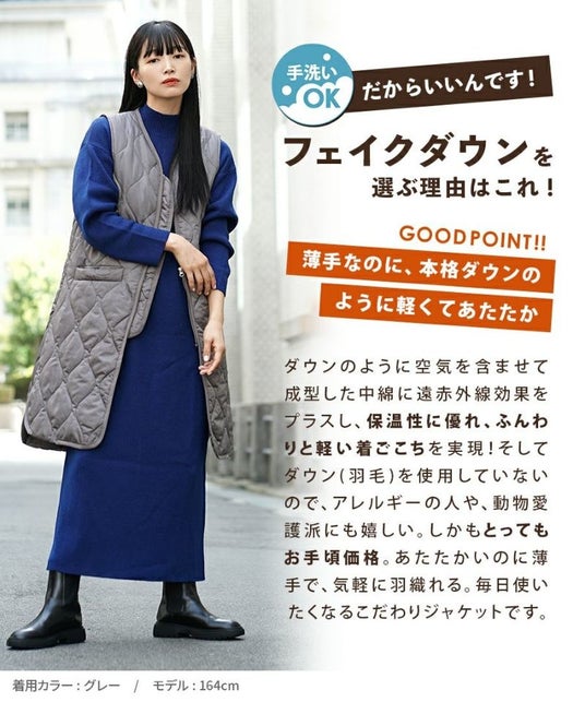 汚れても水洗いが可能です ( ロングベスト グレー着用)