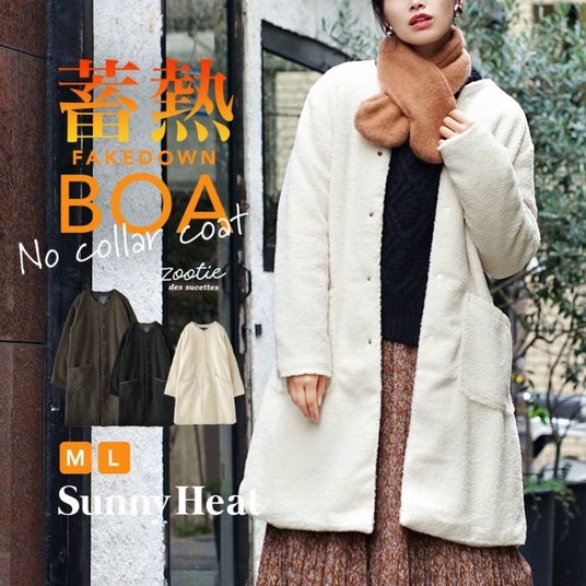サニーヒート ボア ノーカラーロングコート ¥6,990