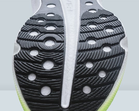 安定した走り心地PEBAXフォームが柔らかくソフトな着地と優れた弾力性を実現。さらにラバーレスのソールが、安定感のある自然な接地感を生む。