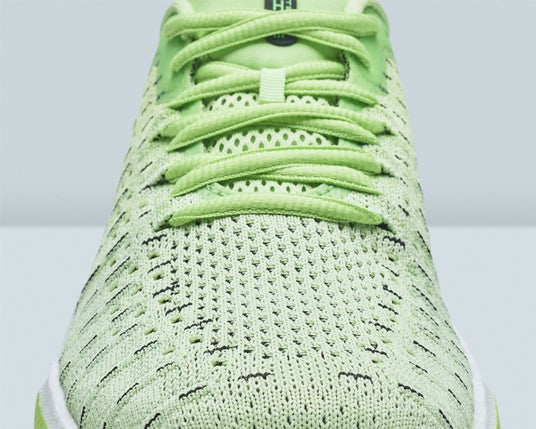 足を包み込む通気性と柔軟性に優れたフラットニットアッパーが足の動きに合わせ、適切にフィットする。