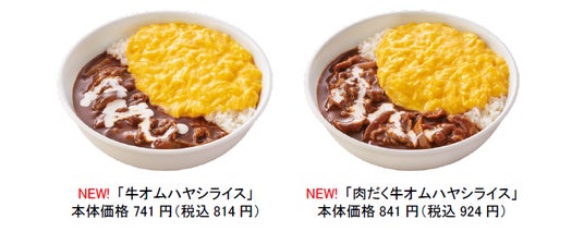 とろとろふわふわの半熟オムレツ風を添えた「牛オム黒カレー」と「牛オムハヤシライス」を吉野家全国店舗で本日より販売開始