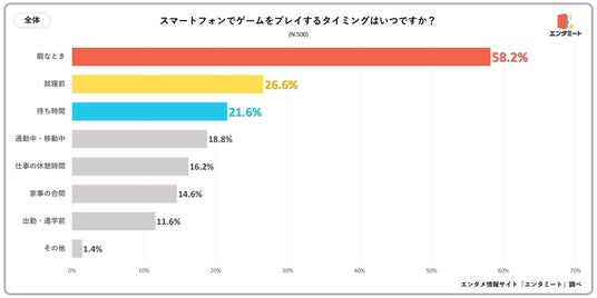 どんな時にスマホゲームをする?第2位は「就寝前」で26.6%、58.2%の第1位とは?