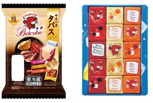 チーズの本場フランスから直輸入の、カラフルでキュートなパッケージに包まれた一口サイズのベルキューブは、チェダーやゴーダといった広く親しまれているチーズを使い、野菜や香辛料を練り込んだ、本格的な味わいの製品です。そんなベルキューブの新製品「ベルキューブ やみつきタパスセレクト 15C」は、活気のあるバルで提供される定番おつまみのタパスからインスピレーションを受けた製品で、ピリ辛「チョリソー風味」と人気の「生ハム風味」のしっかりとした味わいに「オニオン」を加えた、夜のおつまみタイムにぴったりの3種のフレーバーをアソートしました。