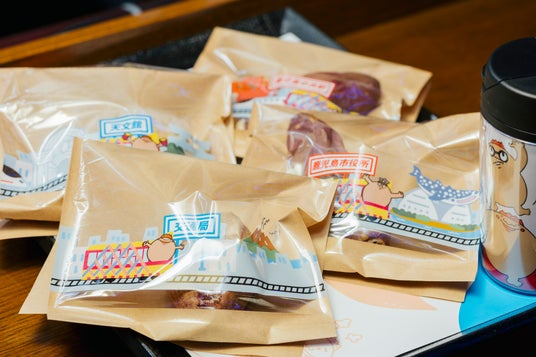4種類のやきいもを運行コースに合わせて提供。オリジナルのイラストが入った包装袋にも注目。