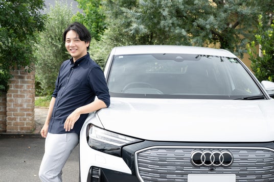Audi Japan SalesのAudi Q4 e-tronアンバサダーを務める株式会社フェイガーCEO 石崎貴紘氏と