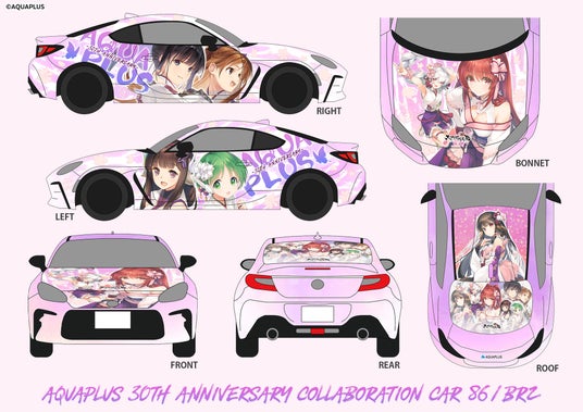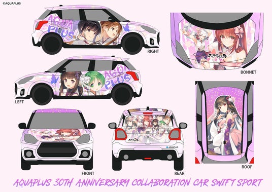 「じおくりえいと」は、多彩なイラスト、丁寧なラッピング施工に定評がある痛車・ラッピング専門店です。同社は2014年に『WHITE ALBUM2』の公式痛車を制作しており、今回はアクアプラスの設立30周年を記念して10年ぶりに再びコラボが実現しました。フルラッピングの豪華コラボカーをお見逃しなく!