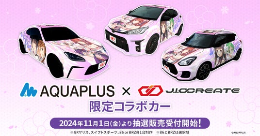 株式会社HIKE(本社:東京都新宿区、代表:三上 政高、以下「HIKE」)は、アクアプラス30周年を記念した限定コラボカー(制作・販売:じおくりえいと)のデザインを公開しました。販売するのは「GRヤリス」、「スイフトスポーツ」、「86 or BRZ」(※86とBRZは選択制)各限定1台。コラボカーのデザインは、アクアプラス30周年キービジュアルのフルラッピング仕様です。抽選販売受付は2024年11月1日(金)より開始します。