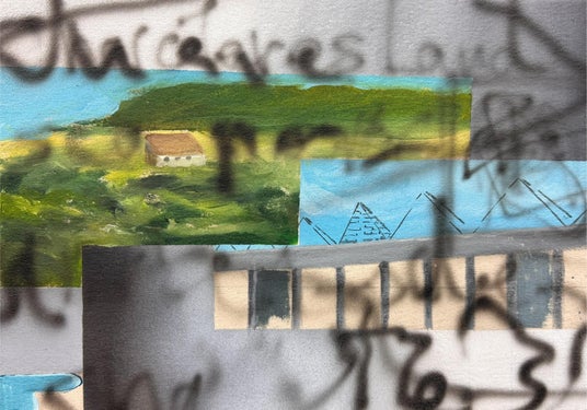 高尾は、1998年大阪生まれ。現在は、京都を拠点にしながら東京で活動も行っています。現代における風景画を追求し、文字や記号、写真、建物などの身近なイメージから巨大なイメージをモチーフにしながら、複数の時間と複数の視点によって生み出される距離を持った絵画を発表してきました。