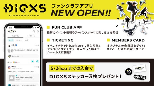 「DIGXS by アーバンスポーツ信州」初の公式ファンクラブアプリが3月3日(月)オープン!