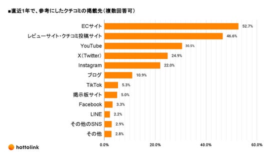 ・参考にしたクチコミの掲載先は「ECサイト」が52.7%で最多