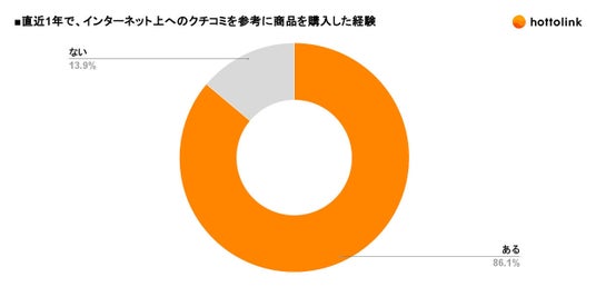 直近1年で、インターネット上へのクチコミを参考に、商品を購入した経験があるかを聞いたところ、「あり」が86.1%となりました。