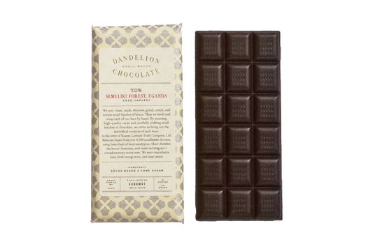 サンフランシスコ発のBean to Bar チョコレート専門店。ダンデライオン・チョコレートのチョコレートバー「セムリキ・フォレスト, ウガンダ70%」とのペアリングをお楽しみください。