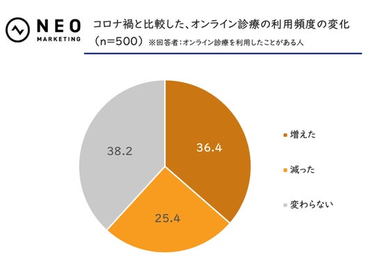 ■コロナ禍と比較した、オンライン診療の利用頻度の変化(n= 500)