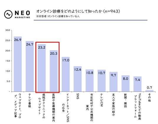 続いて、本調査でオンライン診療を知っている人に対し、どのようにしてオンライン診療を知ったかをお聞きしました。