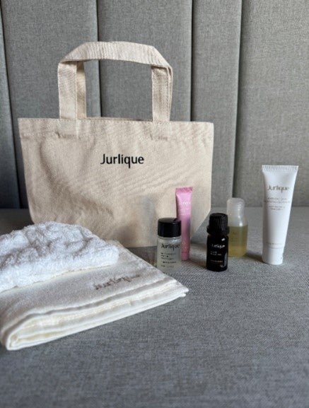 時間と共に刻々と変化する自然美を満喫できる客室に、ジュリークのスキンケア、ボディケア、ハンドケア、アロマオイルの現品合計13 品をそろえた初のジュリークリチュアル体験プランが実現しました。お持ち帰り用のギフトとしてミニサイズのスキンケア5品と、オリジナルグッズ3品もご用意しています。