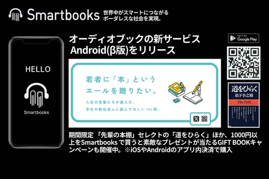 スマートブックス株式会社(本社:東京都世田谷区、代表取締役社長:相内 遍理、以下:スマートブックス)は、AIナレーターを活用した新しいオーディオブックサービスのベータ版をGoogle Playでも2025年1月31日にリリースました。『先輩の本棚』2025」事務局が発行している「先輩の図書2025」で推奨されている「道をひらく」をフィーチャー。