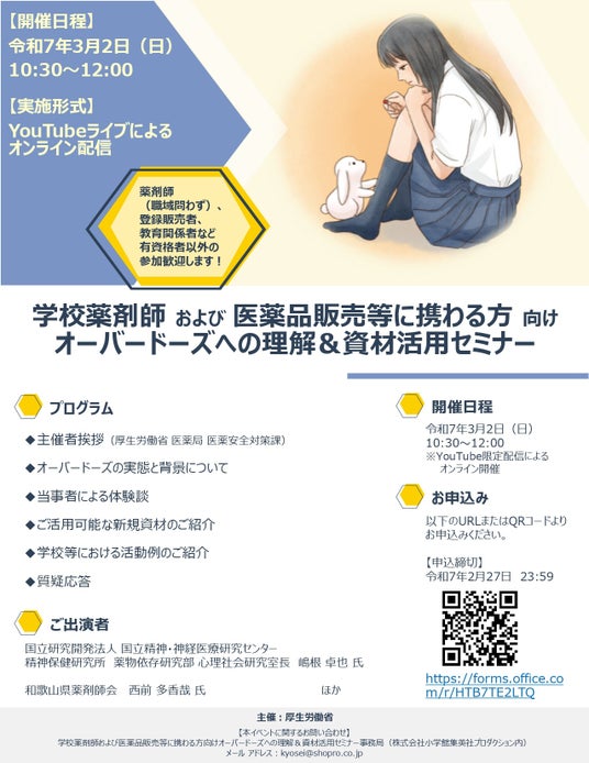 「学校薬剤師 および 医薬品販売等に携わる方向けオーバードーズへの理解&資材活用セミナー」