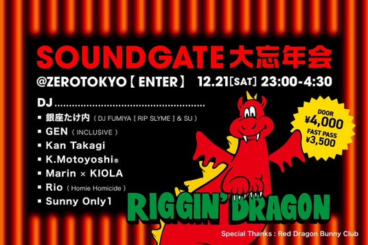 カルチャーの最前線が集結!「SOUNDGATE 大忘年会」ENTERブースにて、DJイベント『Riggin’ Dragon』を開催!at ZEROTOKYO