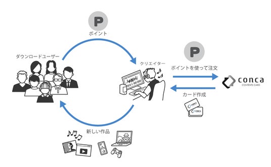 株式会社バタフライコード(本社: 大阪府大阪市、代表取締役: 藤井正尚)は、ダウンロードカード制作サービス「conca(R)」にポイント機能を導入しました。ダウンロードユーザーの皆様が、concaを通じてファイル配信を行うクリエイターを応援できる仕組みとして、ポイントシステムを提供いたします。