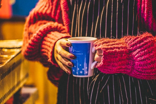 オリジナルデザインのマグカップで、ホットワイン、ホットチョコ、ホットアーモンドミルクで心も体も温めてください。