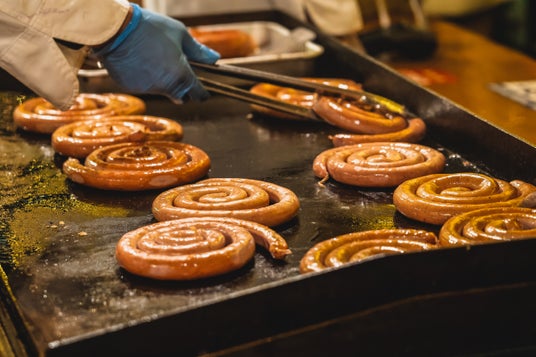 大人気なのが、ぐるぐるソーセージです。正式名称は「シュテファンブルスト」で、粗挽きウインナーソーセージには。豚の赤身と脂が使用されています。パリっとはじける皮と、ジューシーな肉の味が口の中に広がります。