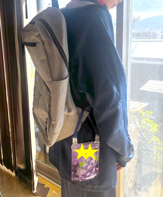 リュックに取り付けた中学一年生の男子「カバンにつけたまま食べられて最高」
