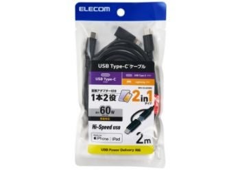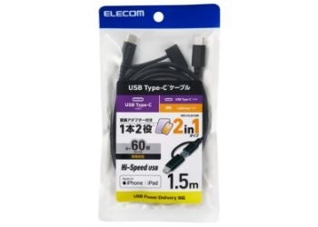 <MPA-CCLAD15BK 2in1ケーブル(USB-C - USB-C/Lightning変換) 1.5m・ブラック>