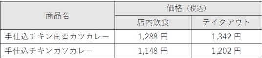 ※「手仕込チキン南蛮カツカレー」はなくなり次第終了。