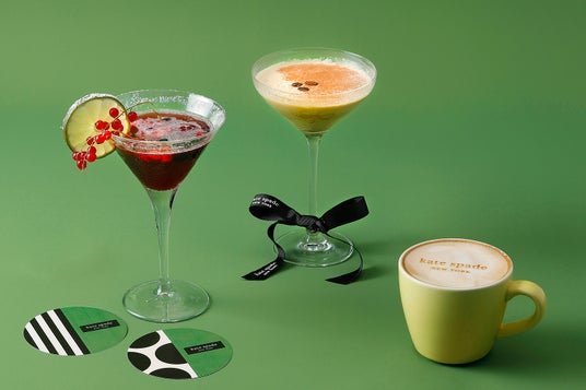 ホリデーらしい赤と緑のコントラストが美しいカクテルや、グラスに華を添えるケイト・スペード ニューヨークのボウのデコレーションやロゴのラテアートなど洗練された3種のドリンクが登場。本コラボレーションオリジナルデザインのコースターとともに提供いたします。