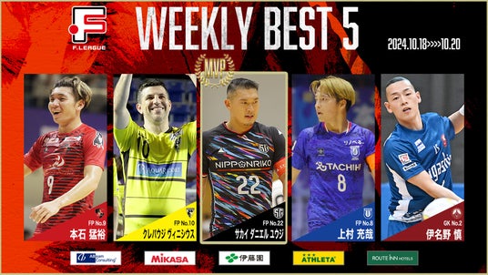 10月18日(金)~20日(日)に実施したFリーグ2024-2025 ディビジョン1 第11節 6試合の週間ベスト5を発表いたします。