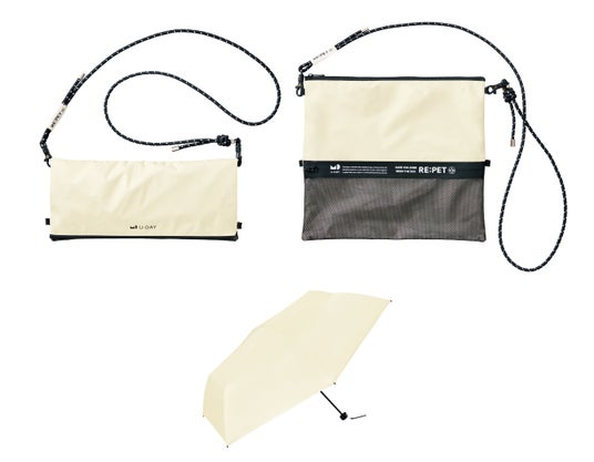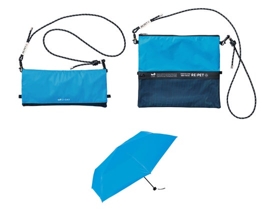 サスティナブルなレイングッズブランド【U-DAY】から、大人気 RE:PET シリーズに新作が仲間入り!2wayサコッシュ付きの晴雨兼用折傘 UVカット率100%/完全遮光/遮熱効果