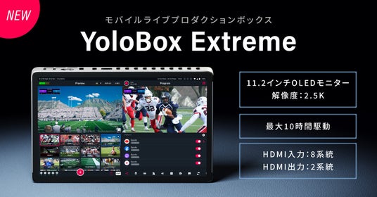「YoloBox Extreme」はYoloBoxシリーズのフラッグシップモデルで、日々高まる映像制作現場のニーズに対応すべく、先端の映像処理技術と高性能ハードウェア、アプリケーションを融合させ、さらなる進化を遂げました。これにより、放送局、イベント運営会社、オンライン教育機関、個人クリエイターなど、幅広いユーザーのニーズに応えることができます。