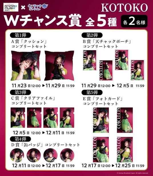2024年11月23日(土)より『KOTOKO』のオンラインくじを、「くじラックオンライン」で販売いたします。