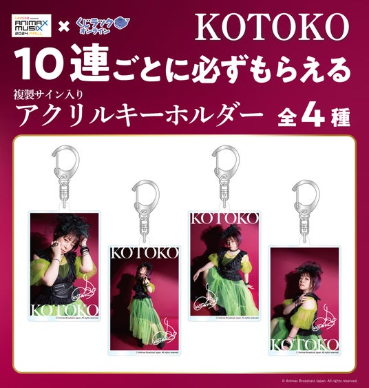 カルチュア・エンタテインメント株式会社は、「Lemino presents ANIMAX MUSIX 2024 FALL」×「くじラックオンライン」タイアップ企画として、シンガーソングライター『KOTOKO』とのコラボを実施いたします。