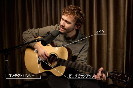 また、ボディのサイドに設置された3つのノブを操作するだけで、簡単に音作りを行えます。Master Volumeで繊細な音色の表現を調整し、Mic Blendで箱鳴り感を加えます。そして、Bass EQでピークとなるEQをコントロールすることで、あらゆるユースケースに適応するサウンドを生み出すことができます。