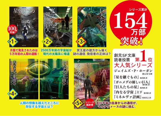 月面で発見された宇宙服をまとった遺体は、5万年前のものだった……という、ジェイムズ・P・ホーガンの不朽の名作『星を継ぐもの』(池央耿・訳/創元SF文庫)。そのシリーズ第5巻にして最終巻の『ミネルヴァ計画』(内田昌之・訳)がついに刊行です。