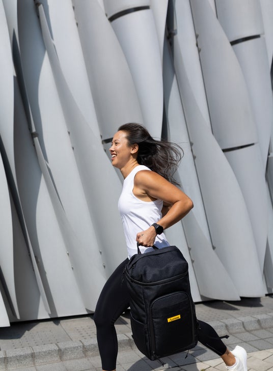 ジム用のトレーニングシューズや登山用ブーツなどの靴が収容可能で、PC、小物類、ボトルなども機能的に収納でき、移動をスタイリッシュにサポートします。