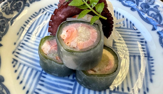 合鴨の旨味と甘酢風味が絶妙に調和し、前菜やおせち料理にぴったりの一品。独自の製法で巻き上げた大根と合鴨の味わいが楽しめます。