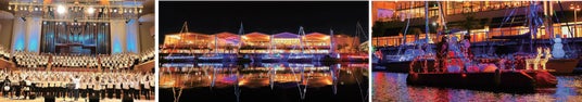 左:ゴスペルライブ 中央:シップイルミネーション 右:サンタボート