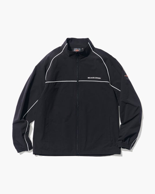 ストレッチポリエステル生地を使用したクロスウインドジャケット。特徴的なパイピングデザイン。同素材のクロスウインドパンツとセットアップコーディネートが可能です。